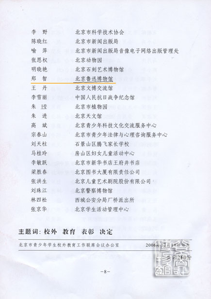 我馆郑智同志被北京市青少年学生校外教育工作联席会议办公室、市教委和市人事局授予“北京市校外教育先进个人”荣誉称号