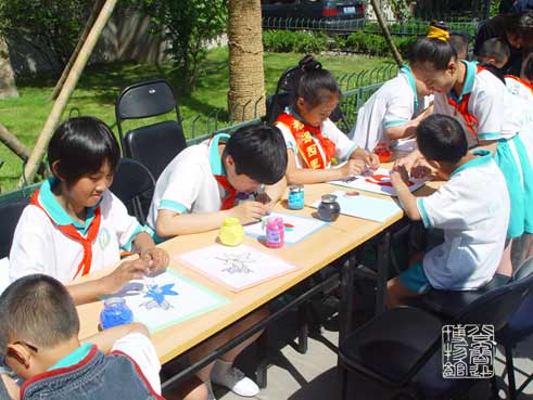 为了这次爱心义卖活动,由末代皇侄爱新觉罗•毓岚先生捐资成立的新源西里小学学生爱慧社团的同学们以极大的热情精心制作了大批手工艺义卖品,特别是那些残障同学的每一件作品,无不付出了比常人多数倍的辛劳和汗水。爱新觉罗•毓岚先生还将自己的一百多件收藏和书法作品奉献出来,在此次活动中进行义卖。