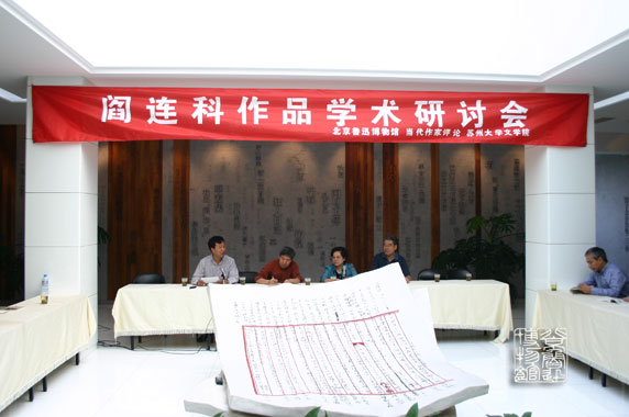 2007年9月15日,由北京鲁迅博物馆、《当代作家评论》杂志社、苏州大学文学院联合主办的阎连科作品学术研讨会在鲁迅博物馆举行,会期一天。鲁迅博物馆馆长孙郁、馆长助理黄乔生出席了会议。阎连科、刘恒、刘庆邦、格非、林白、李洱、陈晓明、程光炜、李敬泽、王必胜、李青、林建法、梁鸿、胡军、王尧、黄发有、罗岗、谢有顺及几位海外汉学家等40余位著名学者、作家、评论家齐聚鲁博序幕厅,就阎连科的整体创作展开热烈的讨论?;嵋榈牧礁龅ピ群笥赏跻⒔淌诤统孪鹘淌谥鞒?。