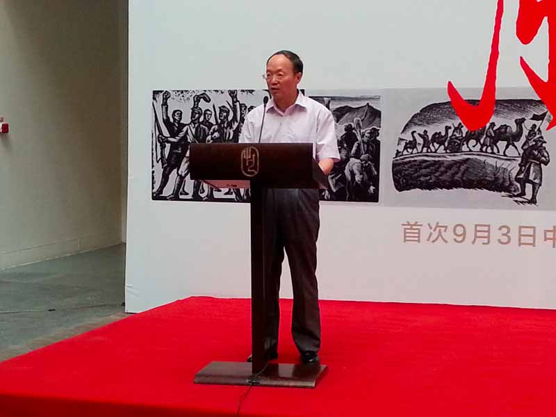 黄乔生副馆长在致辞中指出:“木刻是伴随着现代中国人民的艰苦斗争成长起来的,人民大众需要木刻艺术,而木刻艺术也顺应了时代和人民的需求。”69年前日本军国主义的野蛮侵略,使中华民族陷入前所未有的深重灾难,为缅怀在中国人民抗日战争中英勇献身的英烈和所有为中国人民抗日战争作出贡献的人们,弘扬以爱国主义为核心的伟大民族精神,激励全国人民为实现中华民族伟大复兴的“中国梦”而共同奋斗。2014年2月27日全国人民代表大会常务委员会立法,确定9月3日为中国人民抗日战争胜利纪念日。为迎接今年首次的抗日战争胜利国家纪念日活动,清华大学美术学院特此举办抗战版画特展,以艺术展览的形式表达高校师生牢记历史、不忘过去、珍爱和平、开创未来的愿望。