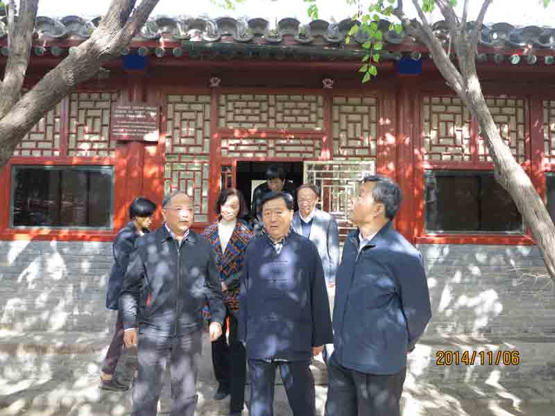 2014年11月6日上午,国家文物局局长励小捷、副局长宋新潮、局办公室主任李游等到我馆就有关馆内及周边改造事宜进行调研。郭俊英同志介绍了总体情况,李战崎同志具体汇报了我馆周边白塔寺历史文化?;で脑旃婊喙氐那榭觯⒔岷现鼙吒脑烨榭鏊得髁宋夜菹乱徊教嵘脑旃婊某醪缴柘?。励小捷局长对我馆的设想给予了肯定并要求:改造方案要本着“整体提升,区域联动”的原则。规划要一步到位,考虑长远发展,要符合自身功能需要和博物馆的定位。后续建设工作要着眼于大局,抓住馆周边改造的机遇,积极配合相关部门,充分利用现有条件提升自己;建设要考虑文物库房、科研、办公等方面的需求。国家文物局金瑞国、吴寒及我馆黄乔生、何洪、安来顺、李金光等一同参加了调研。