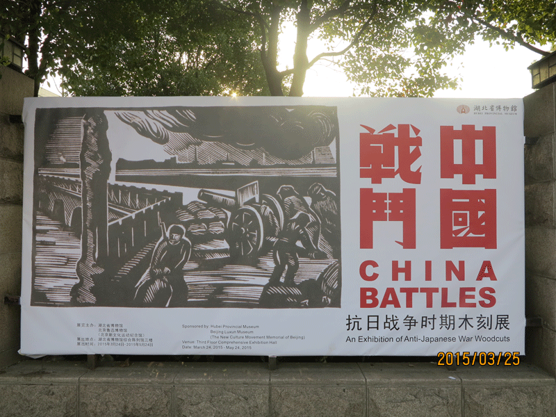 2015年3月24日,由湖北省博物馆、北京鲁迅博物馆(北京新文化运动纪念馆)联合举办的“中国战斗——抗日战争时期木刻展”在湖北省博物馆综合馆正式拉开帷幕。湖北省文物局副局长赵令珍,湖北省博物馆馆长方勤,党委书记、常务副馆长万全文,北京鲁迅博物馆(北京新文化运动纪念馆)常务副馆长黄乔生,原中国艺术研究院研究员、胡风之女张晓风出席了本次展览的开幕式??皇接珊笔〔┪锕莸澄榧?、常务副馆长万全文主持。