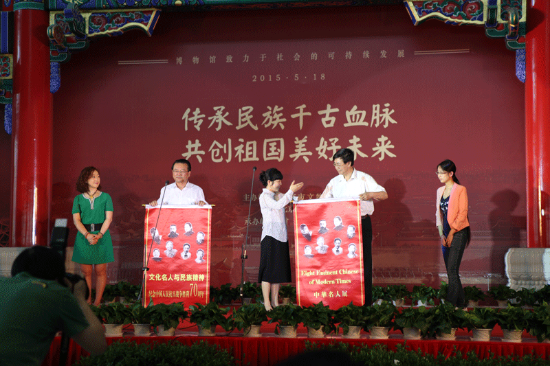 由我馆参与的北京八家名人故居联盟2015年联合展览活动《纪念抗日战争胜利70周年—文化名人与民族精神》也于“5•18国际博物馆日”在首都博物馆主会场启动。启动仪式上,全国政协委员、著名作家艾克拜尔•米吉提与肯尼亚国家工商会中国投资贸易委员会代表杨菲菲分别接过了北京八家名人故居联盟巡展旗。在首都博物馆首展结束后,展览还将赴新疆霍城、广西南宁、江苏泰州、重庆以及北京地区的中小学、企事业单位进行巡展,并将以“中华名人展”为主题赴肯尼亚等国家展出。