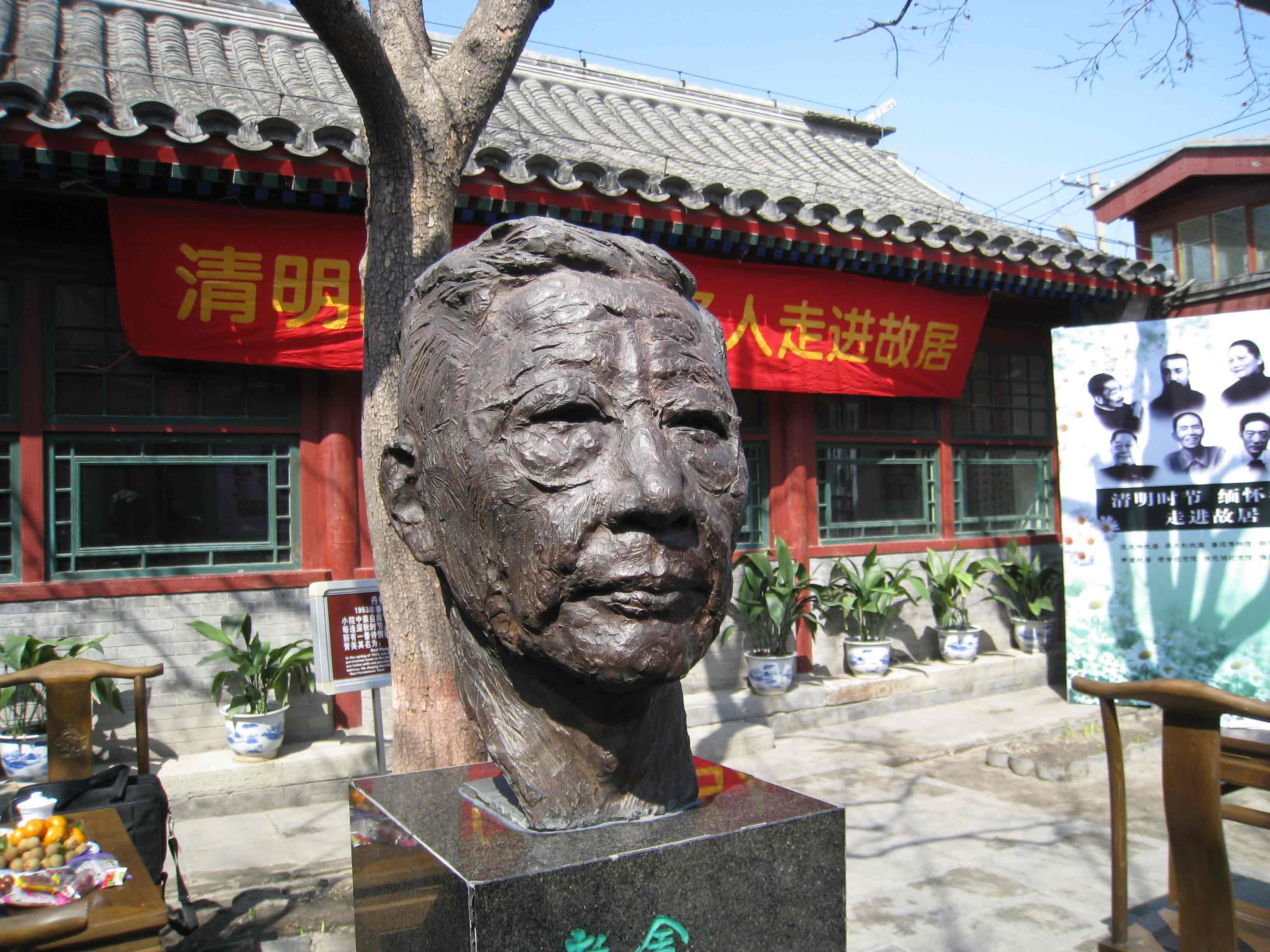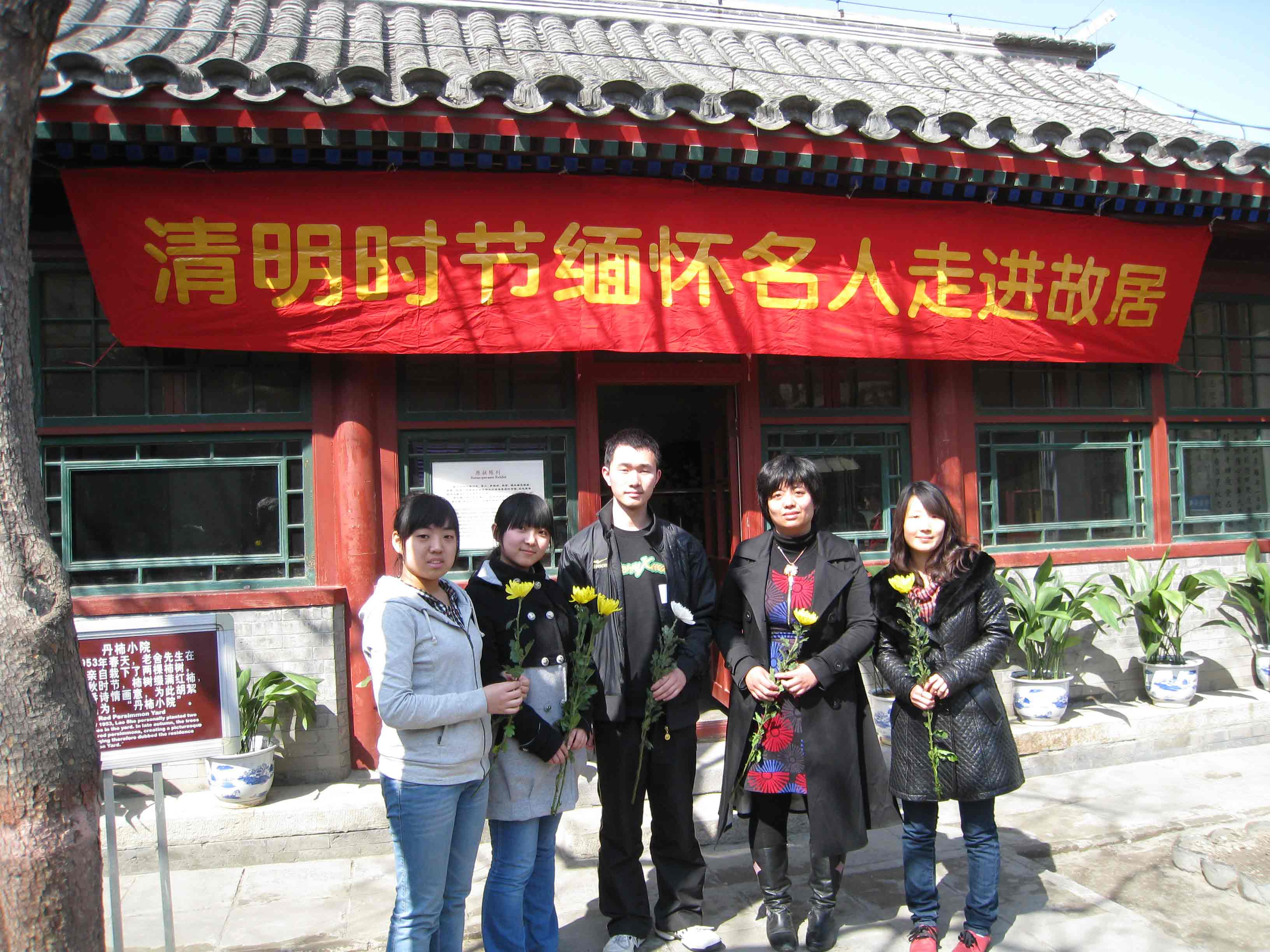 4月2日,清明节前夕,八家名人故居纪念馆(北京鲁迅博物馆、宋庆龄故居、李大钊故居、郭沫若纪念馆、茅盾故居、老舍纪念馆、徐悲鸿纪念馆、梅兰芳纪念馆)在老舍纪念馆共同举办了主题为“缅怀名人走进故居”的清明节纪念活动,出席活动的有名人之后、专家学者以及博物馆志愿者等?;疃韵虬宋幻司聪紫驶ǎ撬卸撩俗髌?,与会者座谈等多种形式追忆先贤,院内大屏幕持续滚动播放八家相关影像宣传片?;疃玫搅吮本┦形俊⒈本┦形奈锞值拇罅χС?。