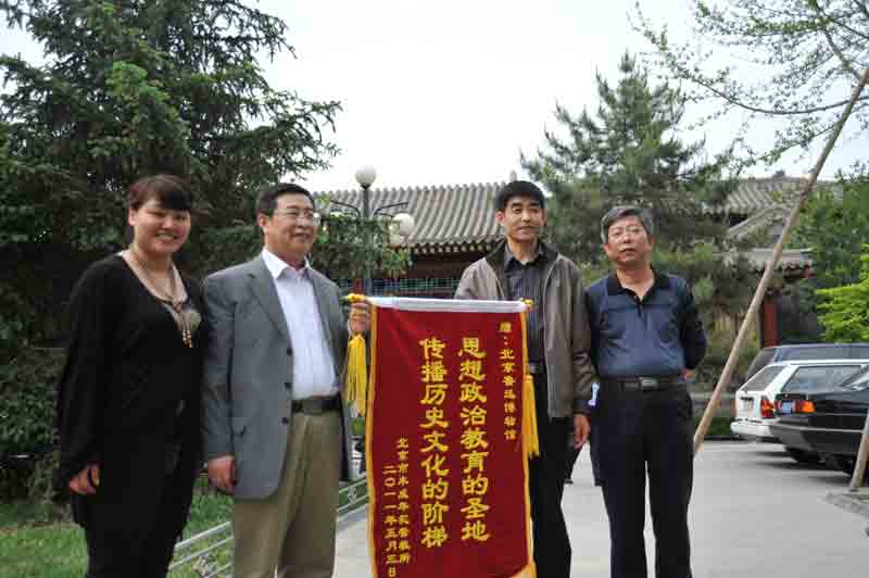 2011年5月3日,在“五四”青年节前夕,北京未成年犯管教所的青年干警来到北京鲁迅博物馆,聆听了讲解员的讲述。参观我馆后,干警们就传承鲁迅精神,高扬爱国主义大旗进行了深入的讨论。2007年1月26日,应北京市未成年犯管教所的邀请,北京鲁迅博物馆曾联合宋庆龄、茅盾、郭沫若、老舍及北京新文化运动纪念馆、梅兰芳纪念馆6家北京地区名人故居纪念馆共同将“传承先进文化,追寻中华名人”展览送进未成年犯管教所,举办了以“传承民族文化,感悟时代责任”为主题的文化展览活动,并为600余名平均年龄在16岁以下的未成年犯现场讲解。这样的一次经历,无疑使未成年犯管教所的干警到北京鲁迅博物馆举办团日活动,有了一层回访的意义。临别之际,干警们把一面写有“思想政治教育的圣地,传播历史文化的阶梯”的锦旗赠送北京鲁迅博物馆,北京鲁迅博物馆赵国顺副馆长代表我馆接受了锦旗。