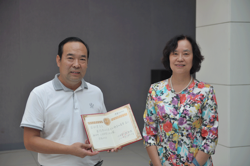 郭俊英馆长向周松建先生颁发捐赠证书