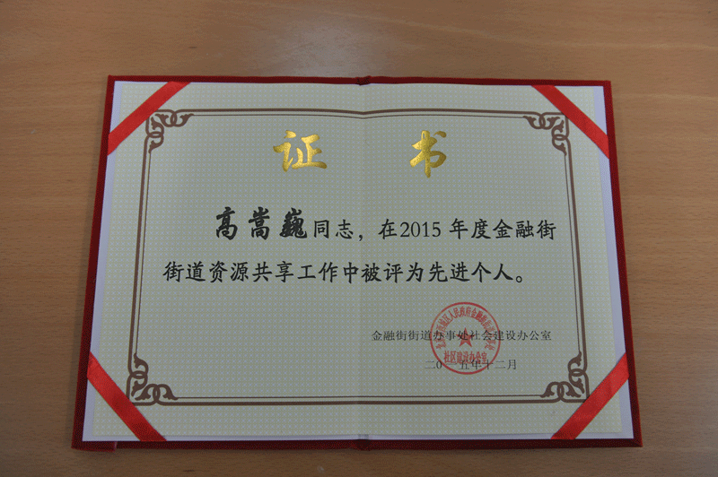 我馆获 “金融街地区资源共享先进集体”称号