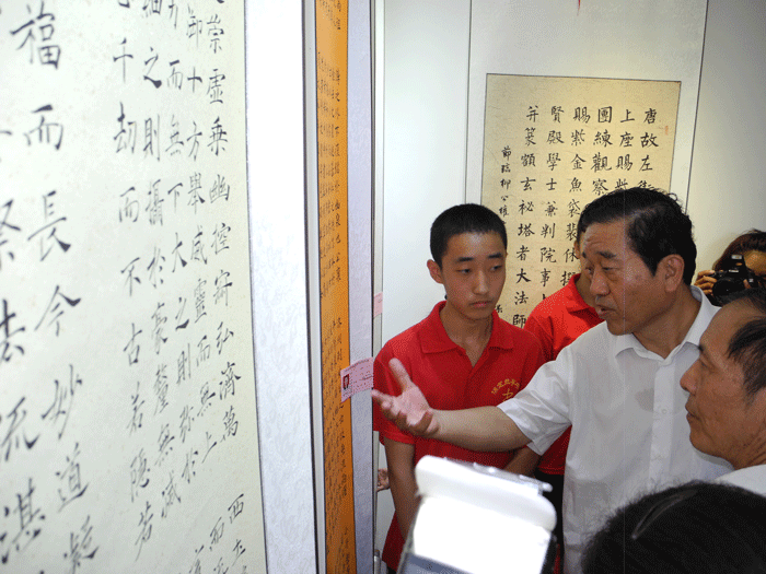 2016年8月20日,由中国书画收藏家协会、北京鲁迅博物馆(北京新文化运动纪念馆)、河北省书法家协会教育委员会、保定市文学艺术界联合会、保定市书法家协会主办,保定兰亭书法学校承办的“铭记历史、追寻经典、彰显底蕴•保定兰亭书法临帖晋京展”在北大红楼开幕。全国政协常委、中国书法家协会主席苏士澍,中国书法家协会副主席、河北省书协主席刘金凯,北京鲁迅博物馆(北京新文化运动纪念馆)常务副馆长黄乔生,国际博物馆协会副主席、中国博物馆协会秘书长安来顺,中国书画收藏家协会常务副会长王永茂、保定市委宣传部副部长王淑彦,保定市文联党组书记郭树林等,保定兰亭书法学校校长张建国、参展师生及观众500余人参加开幕式?;魄巧?、苏士澍等有关领导先后致辞,对此次展览的成功举办表示热烈祝贺,对举办双方付出的辛苦努力表示衷心的感谢,对兰亭书法学?;兄谢判愦澄幕韪叨绕兰邸?皇浇崾?,嘉宾及师生兴致勃勃地参观了展览。苏士澍等著名书法家认真参观了展览,并在现场细细点评了学生们的参展作品,与他们亲密互动。为办好此次展览,苏士澍应邀为此次临帖晋京展题写展标;其余专家也奉献了精品墨宝。