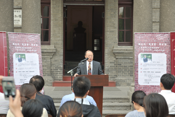 为配合主题活动,中国社会科学院美学专家刘悦笛上午在红楼内为观众带来了精彩有趣的“美学漫步”文化讲座。晚上,全国鲁迅研究专家、该馆常务副馆长黄乔生以《此地·那时·当今》为题,畅谈了“五四”运动暨新文化运动历史及现实意义,让现场观众感悟“百年胜于千载,百年引领未来”的深刻内涵。最后举行的“点亮红楼”将全天的活动推向了高潮,晚19点18分,现场嘉宾和观众拿出手机开启“光照”模式,舞动手机,将始建于1918年的百年建筑——北大红楼代建筑瞬间点亮,赢得观众和行人的阵阵掌声。