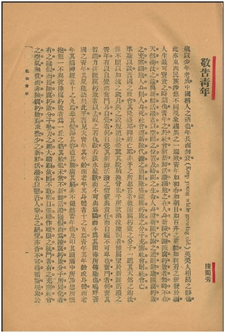 陈独秀为《青年杂志》创刊号撰写的发刊词《敬告青年》