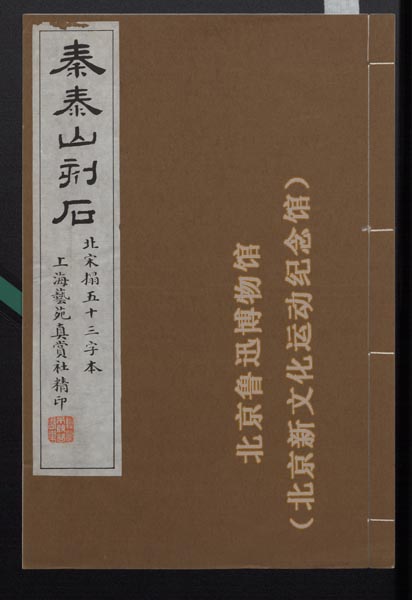 名称:《秦泰山刻石》年代/版本:上海艺苑真赏社影印北宋拓五十三字本尺寸(厘米):33.2*22.3*0.4