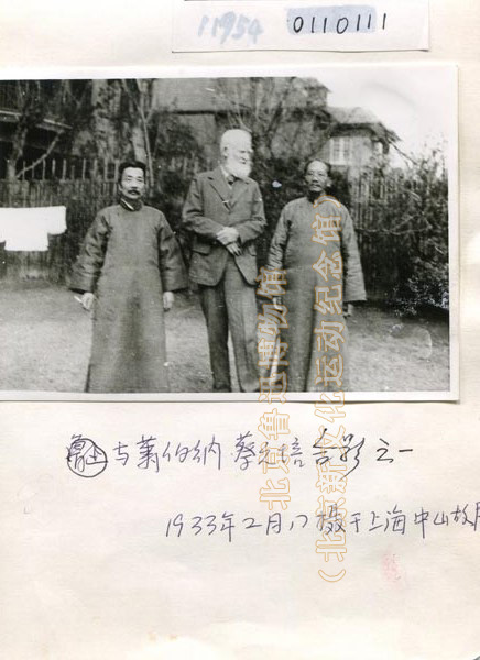 照片名称:与萧伯纳、蔡元培合影之一创作年代:1933年2月17日