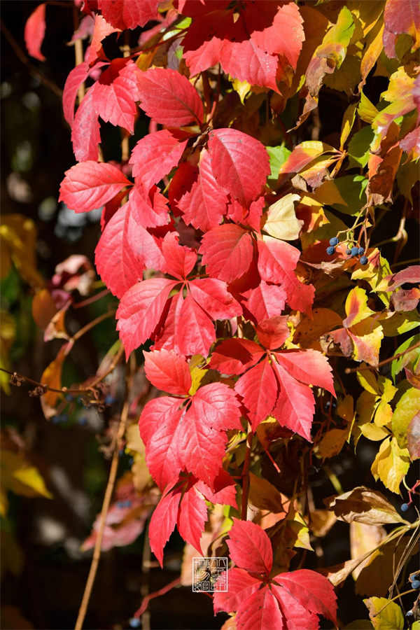 抬眼望去,熟透的柿子挂满枝头,与忍不住飞上前啄食的小鸟相映成趣。再往深处走,一抹鲜艳的红色出现在视野,这红、绿、黄三色叶片相互交织成一幅绚丽的画卷。红色热烈奔放,绿色清新宜人,金黄色温暖明亮,它们交相辉映,让人陶醉在这美不胜收的秋日景色里。
