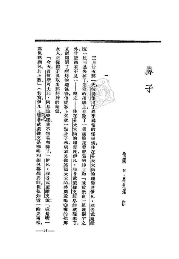 《译文》创刊号所刊鲁迅译《鼻子》(首页)