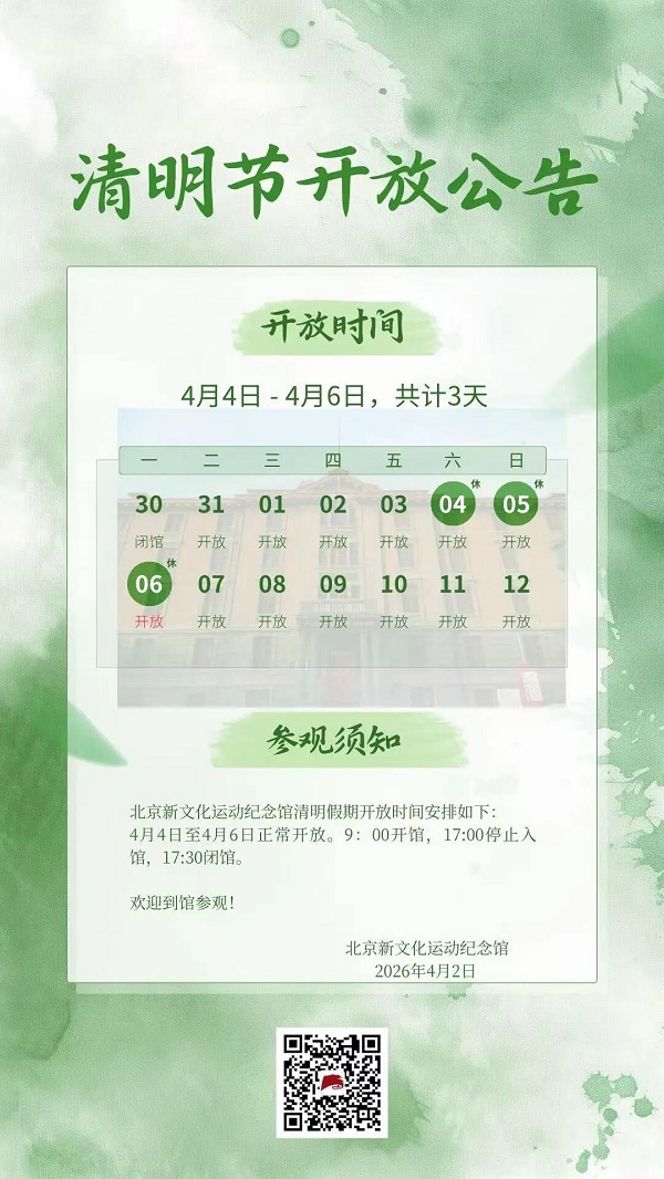 北京新文化运动纪念馆清明假期开放公告